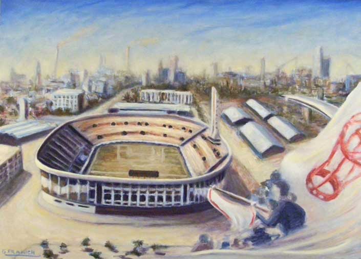 "Cancha de Huracán y sus Alrededores", óleo sobre lienzo, 60 x 80 cm. |